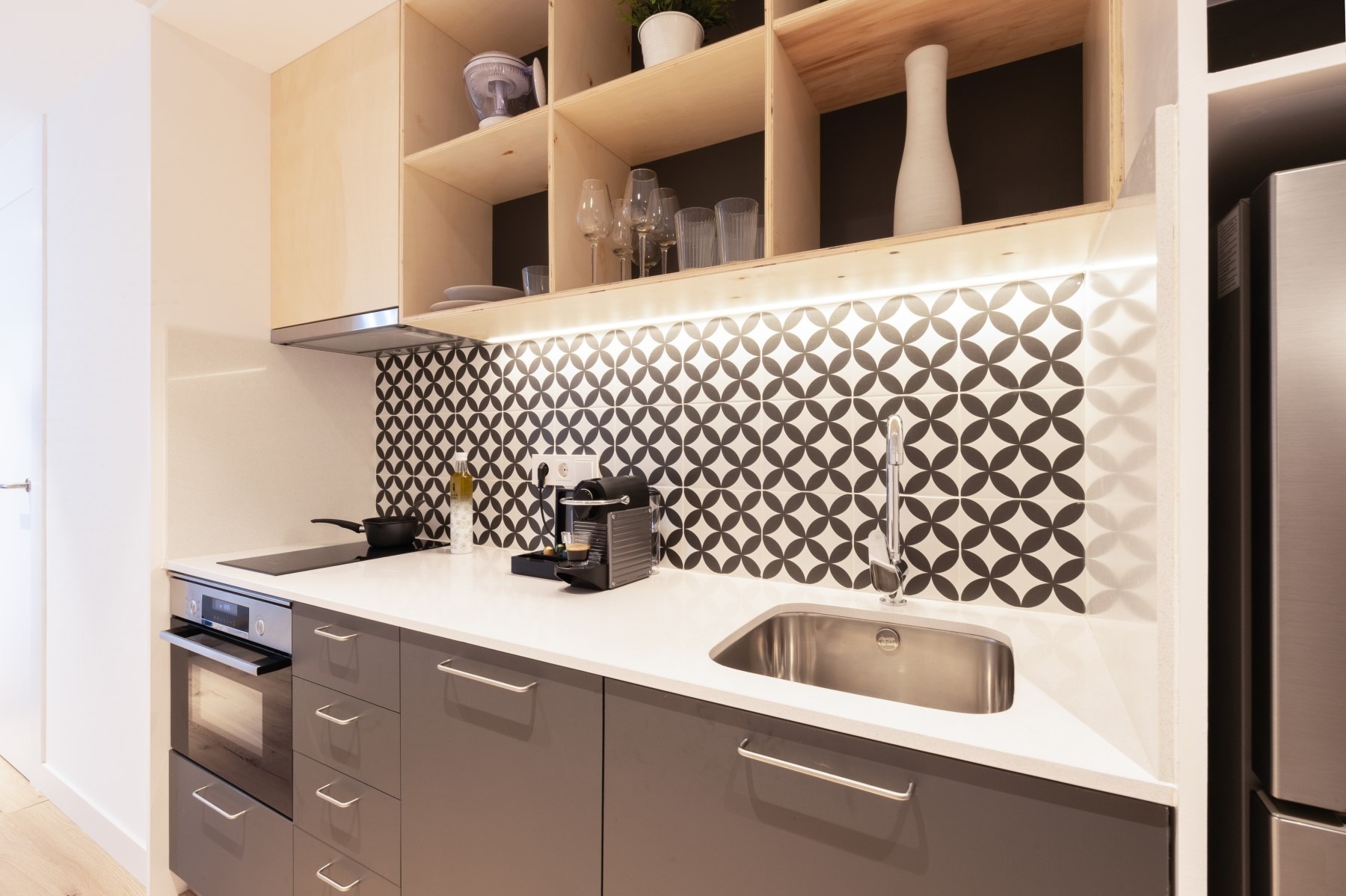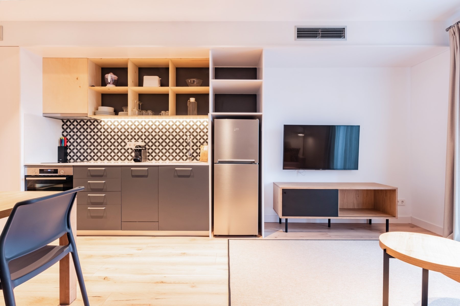 Inaugurated in 2019, our apartments in Tarragona, Port Plaza Apartments, are fully equipped with the latest technology and facilities to provide you with the rest and comfort you need. Thanks to the situation of the building and its complete refurbishment, the 34 apartments have plenty of natural light. The high-quality materials and tailor-made design present a fresh, modern style with a predominance of wood and bright colours.